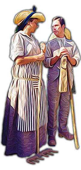 Dois pastores, um transporta consigo a manta, o cajado e a cabaça e o outro a caroça com os respetivos plainitos. A pastora vestida com capa da serra do Montemuro, feita artesanalmente e que traz consigo a roca, o fuso e a cesta onde transporta a lã e a merenda que leva quando vai para o monte.